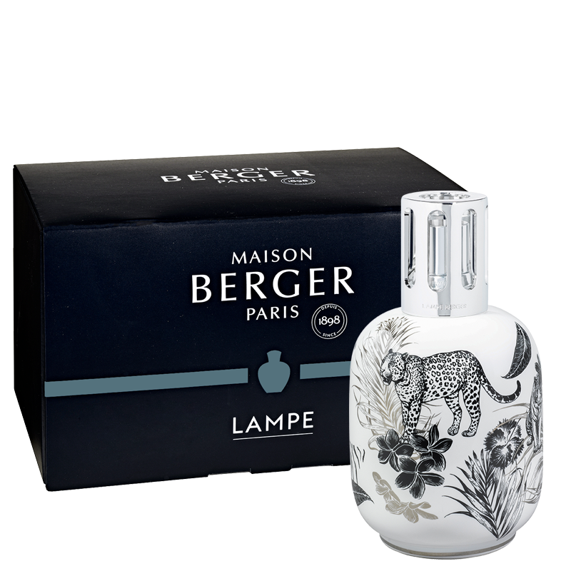 Show off your wild side! The White Jungle catalytic lamp is crafted in porcelain, a material historically used in some of Maison Berger’s iconic decorative objects. White Jungle, however, is a thoroughly modern take on the porcelain lamp. The stark white enamel is adorned with a black and silver pattern depicting a gorgeous, vivid scene of lush vegetation, tropical flowers, and exotic animals. The silvery shine of the cap brings out the silver embellishments on the lamp body for a striking effect. This showpiece is stunning, exquisitely crafted, and sure to become a collector’s item. Add untamed jungle energy to your space with a gorgeous accent that promises adventures outside the ordinary.