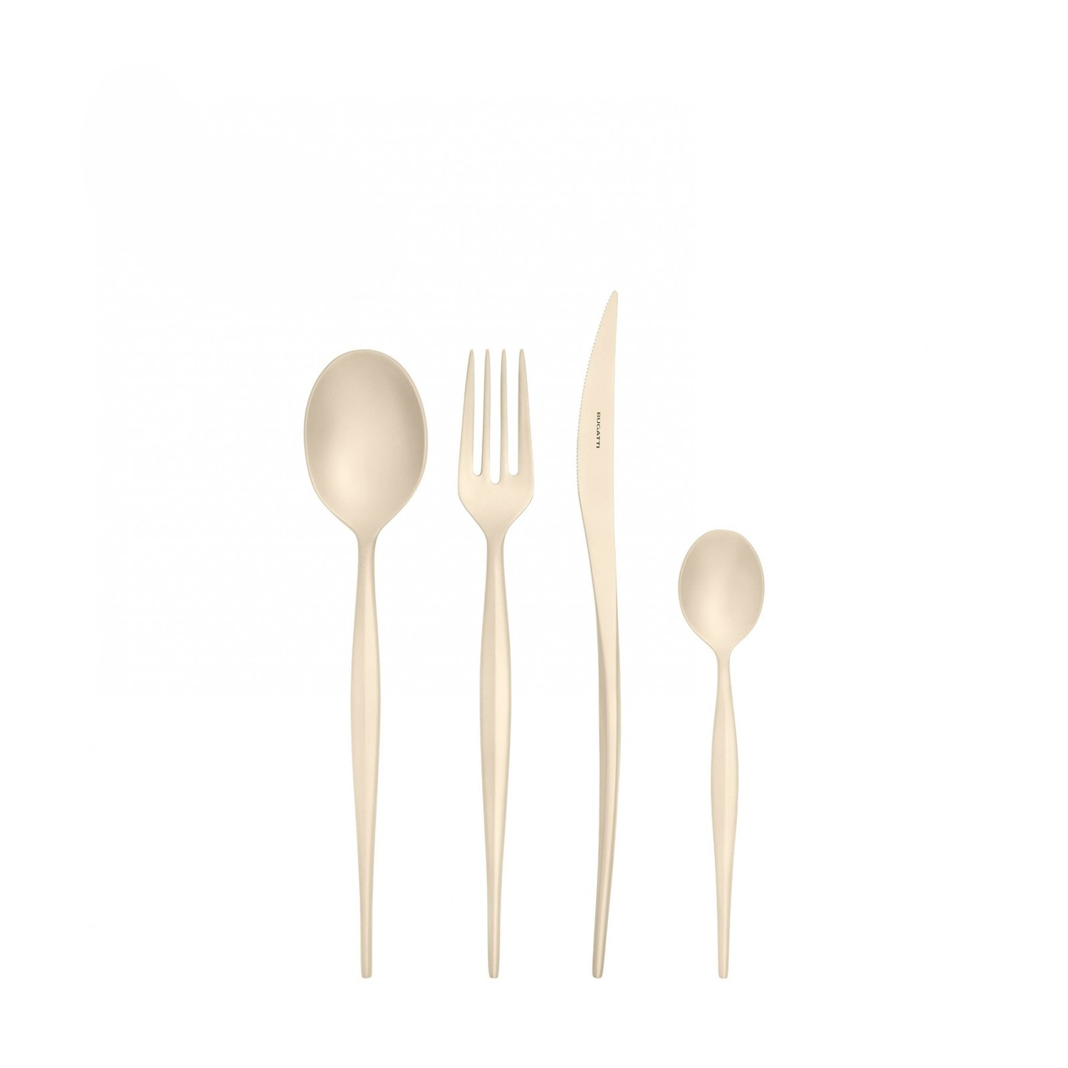 Elongated shapes, the purity of design, and a minimalist, original style make Natura Champagne cutlery a modern and elegant addition, bringing a refined and unexpected touch to your table. Inspired by the delicate form of a blade of grass, it combines natural beauty with contemporary aesthetics. Made of 18/10 stainless steel, Natura cutlery unites high-quality materials with a distinctive shape. An unparalleled character for those who appreciate individuality and love to stand out.