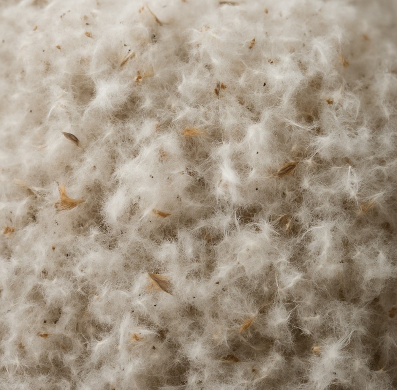 În pilote mai accesibile se folosește adesea puf regenerat — adică puf deja utilizat anterior. Este spălat, uscat, tratat chimic și reintrodus în pilote. Dar structura lui este compromisă, iar asta nu e un simplu detaliu tehnic.