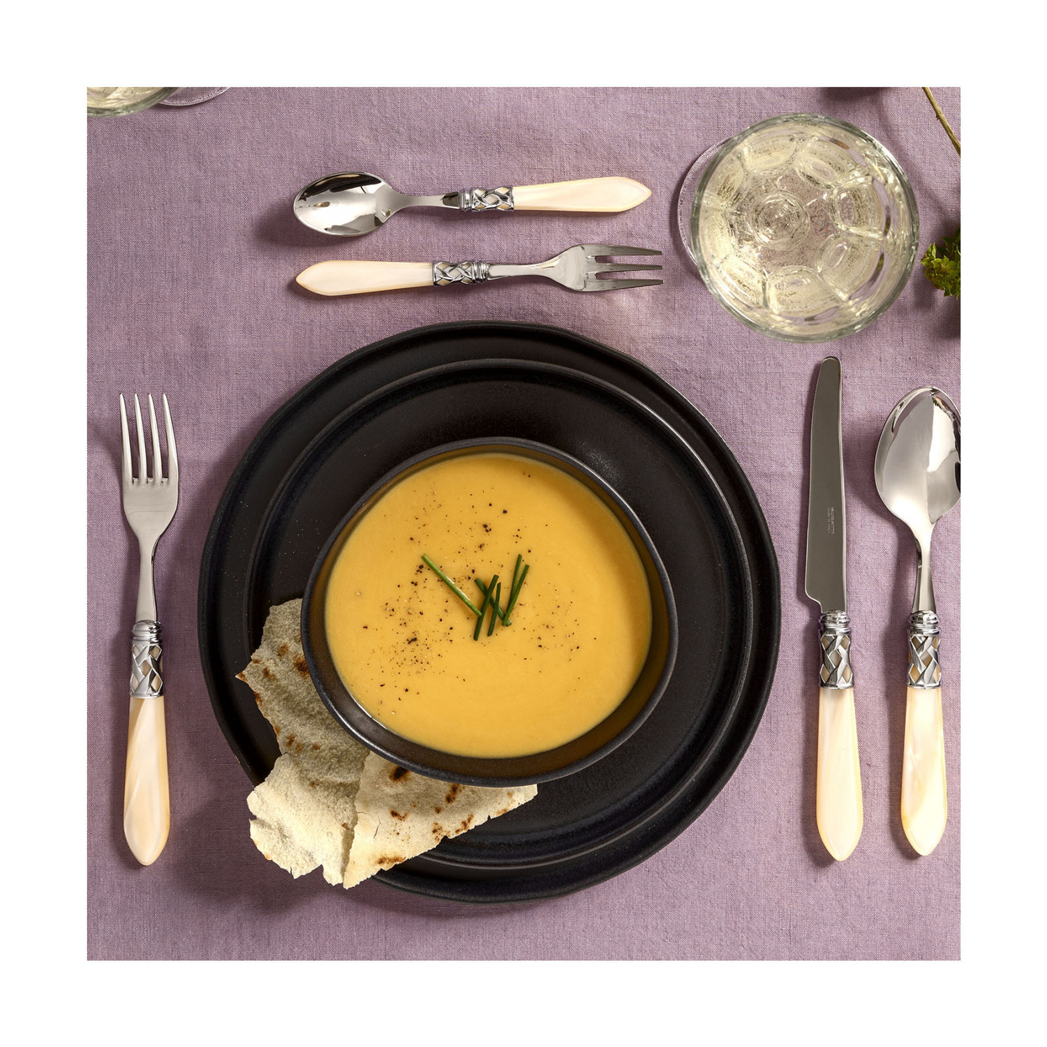 Confecționate din oțel inoxidabil 18/10, fiecare dispune de un mâner elegant din acril, combinat cu un inel împletit rafinat, cu finisaj din oțel lustruit.
