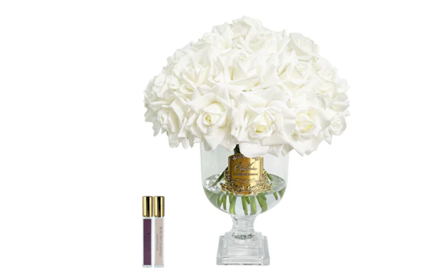 În setul cu trandafirii, realizați cu o precizie și un realism remarcabil, sunt incluse două flacoane de spray parfumat, care pot fi pulverizate pe flori pentru a reîmprospăta și a intensifica parfumul lor rafinat.