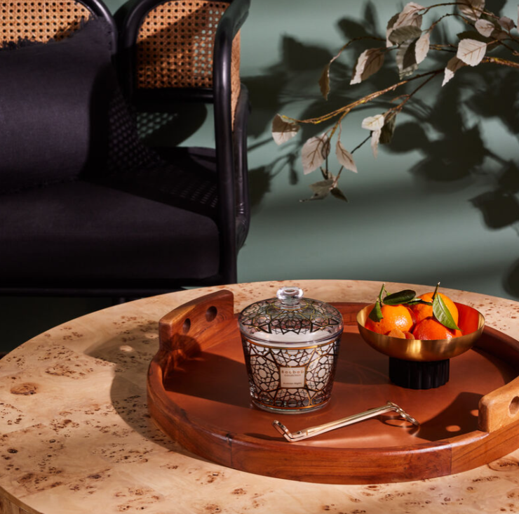 Lumânarea parfumată Arabian Nights va elibera un parfum lemnos în toată casa. Sticla, decorată cu o imprimeu serigrafic în negru și auriu, este de un rafinament rafinat, care amintește de palatele din Orientul Mijlociu. Modelul, inspirat de celebra mashrabiya, transmite motivele arhitecturii arabe și vă aduce în lumea mistică a Orientului Mijlociu.
