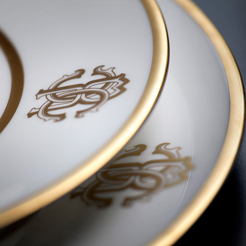 Silk Gold este una dintre principalele game din colecția de porțelan fin de la Roberto Cavalli.
