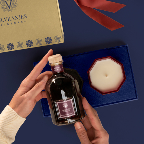 Помимо изысканных диффузоров, коллекция предлагает наборы с ароматическими свечами, которые добавляют тёплую и уютную атмосферу в праздничные дни. Каждый набор сочетает уникальную упаковку, вдохновлённую формой флаконов Eau de Parfum, и неповторимые ароматы, передающие очарование бренда Dr. Vranjes Firenze.