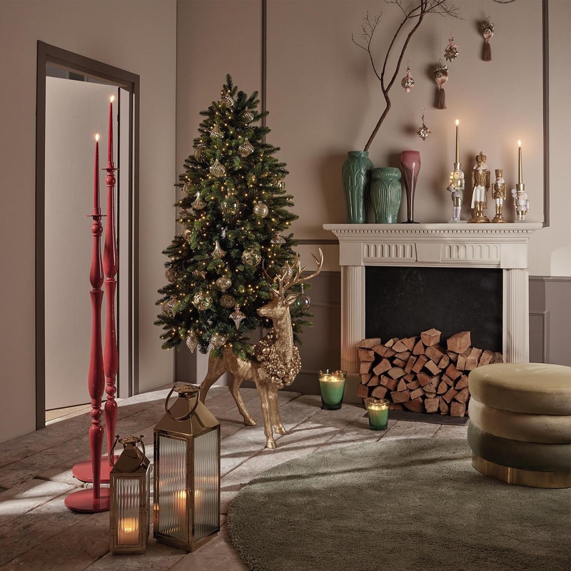 Освещение: встроенные белые LED-огни, равномерно распределённые по всей ёлке. Количество огней меньше по сравнению с другими моделями и варьируется от 1500 до 3800 мини-LED в зависимости от размера.