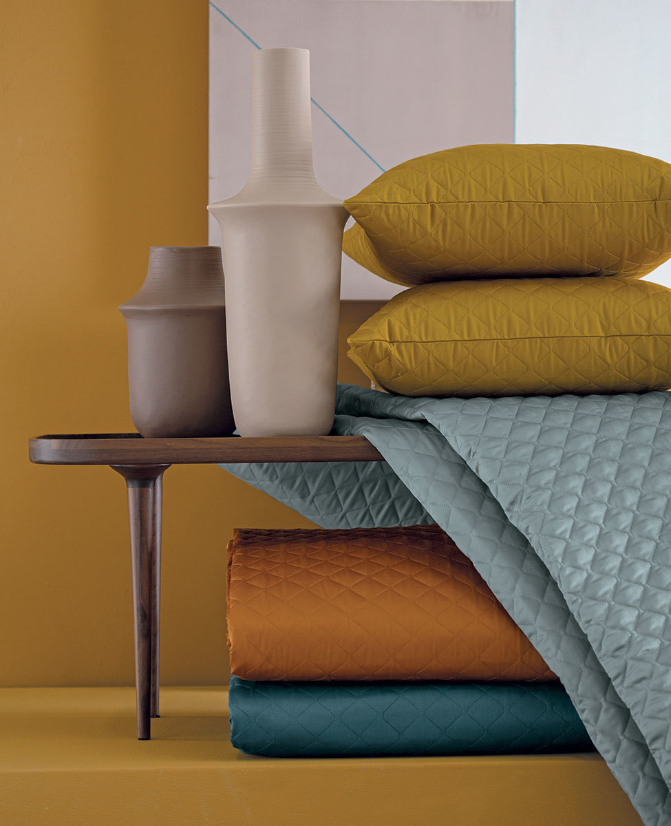 A quilted bedspread made of solid cotton sateen will create a cozy atmosphere in your bedroom.