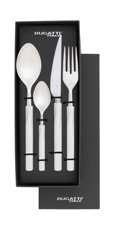 - Material: steinless steel 18/10, acrylic handle; finish: matt; nacreous