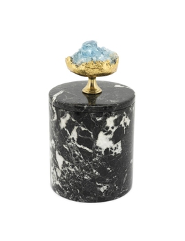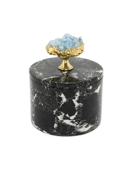 Cea mai misterioasă dintre cutiile Abhika — marmură neagră cu celestină. Acest mineral, cunoscut și sub numele de celestin, formează cristale albastre și este asociat cu puterea divină. Se crede că favorizează înțelegerea profundă, creșterea conștiinței și starea de conștientizare.