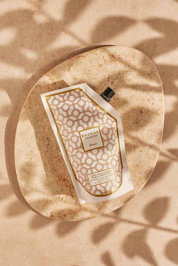 Din surse etice din Burkina Faso, ingredientele active găsite în fructele de baobab sunt de 6 ori mai concentrate decât în orice alt fruct. Aceste ingrediente active provin din pulpa fructului, care este bogată în vitamina C. Au proprietăți antioxidante care ajută la lupta împotriva radicalilor liberi, responsabili de îmbătrânire. Combinația de biolipide și agenți tensioactivi blânzi conferă gelului de duș un efect de curățare și hidratare foarte reconfortant. În contact cu apa, gelul de duș formează pe piele o peliculă delicată și protectoare.